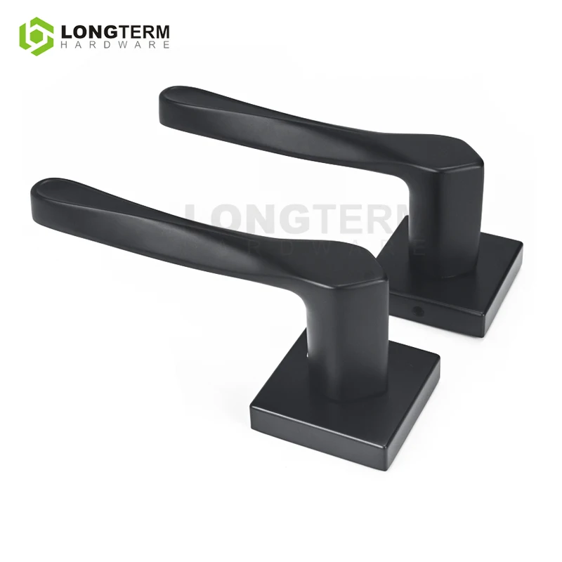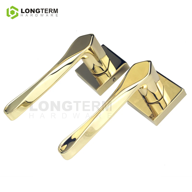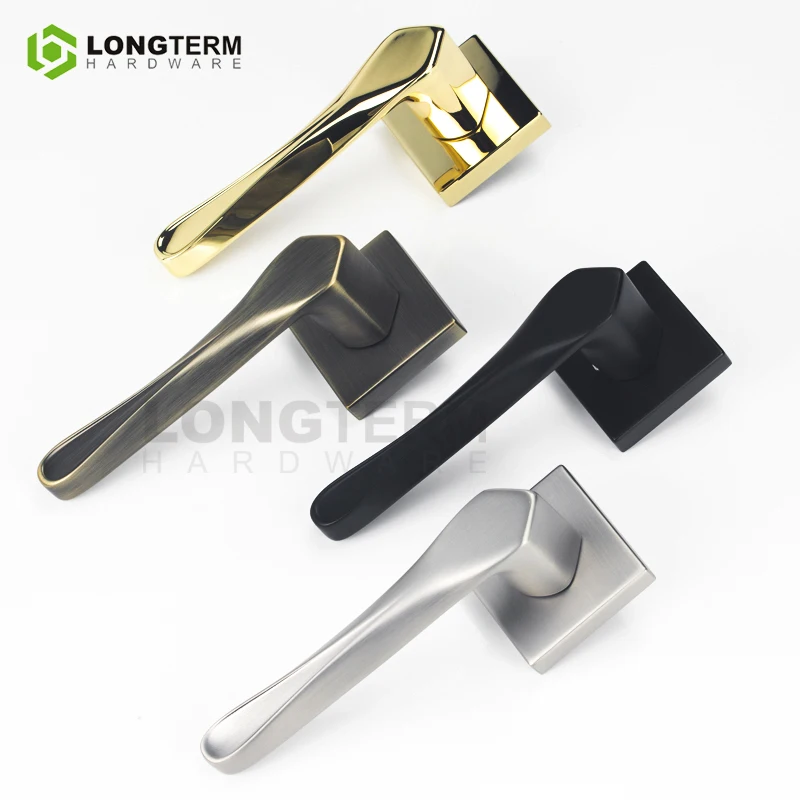 Longterm Hardware Square Rosette Mortise Lock Handle Luxury Gold Black Copper Door Lever Zinc Alloy Interior Door Handle Set
