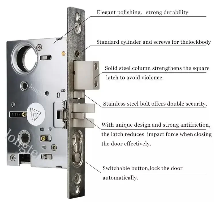 Stainless Steel Big Door Pull Handle Lock Set Factory Manufacturer SUS304 American Door Lever Handle Lock for Villa Entry Door