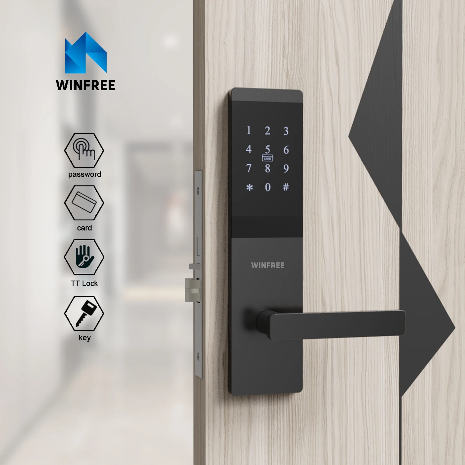 RFID Card + passcode+app(TT lock)+Key