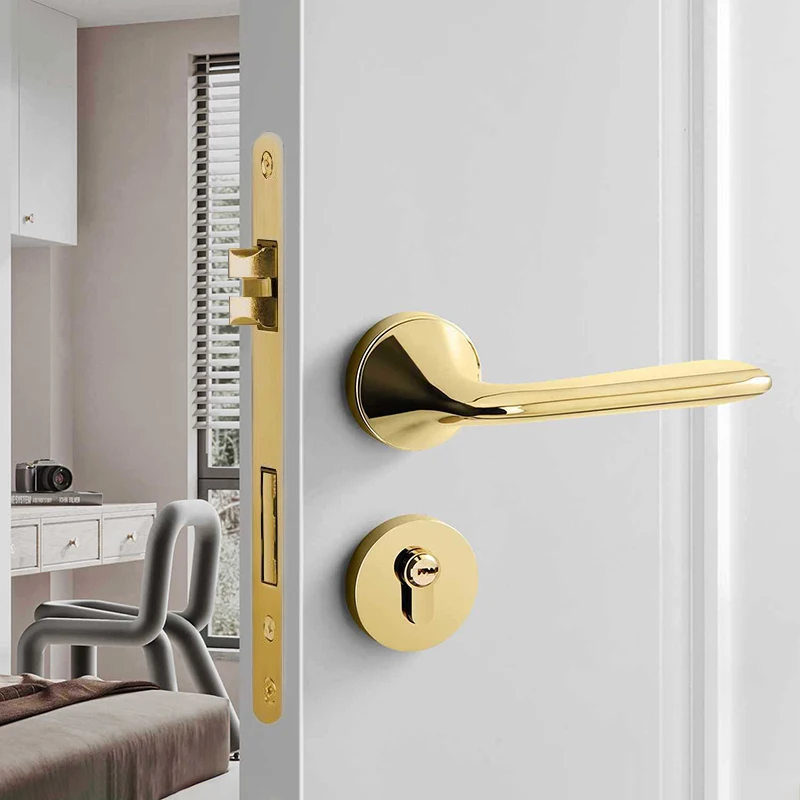 Wooden Door Privacy Lever Lock Zinc Alloy Luxury Door Handles with Locks Interior Matte Black Gold Door Handle Lock Set for Home
